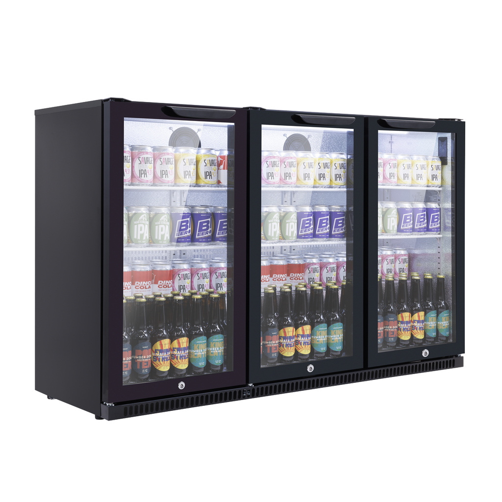 Hinged Triple Door, Back Bar Drinks Fridge/Cooler, 307L Capacity, 452 Cans – Black